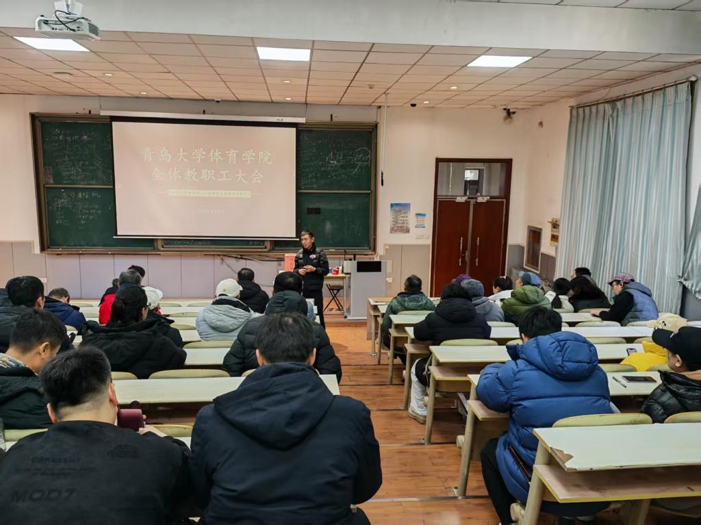 为深入学习贯彻党的二十届四中全会精神,统筹推进期末各项工作有序进行,体育学院于12月26日召开全体教职工大会。